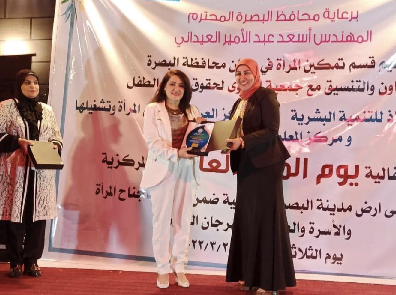 Please scroll for English translation مساءالخير للأصدقاء الكرام المركز العراقي لتأهيل المرأة يدعم ويشارك قسم تمكين المراة في البصرة في الاحتفال الاختتامي ليوم المراة العالمي من على ارض معرض الزهور في المدينة الرياضية في البصرة بتاريخ ٢٩/٣/٢٠٢٢حيث تم نشر رسائل توعوية حول القرار الأممي رقم ١٣٢٥ وتنفيذ الجزء الثاني من من الخطة الوطنية كما تم تكريمنا من قسم تمكين المراة في المحافظة وكان التكريم من الأخت رحاب العبودة رئيس لجنة المراة في الدورة البرلمانية الثالثة كما كرم مركزنا الاخوات ايناس الجبوري مدير قسم تمكين المراة في محافظة البصرة والاخت رحاب العبودة مستشارة رئيس مجلس النواب والدكتورة عواطف المصطفى رئيس جمعية التقوى علما ان جمعية التقوى ومؤسسة الملاذ شركاءنا في الاحتفال#جنان. - مبارك- التميمي#رئيس المركز العراقي لتاهيل المراة وتشغيلهاGood evening dear friendsThe Iraqi Center for Women’s Rehabilitation supports and participates in the Women Empowerment Department in Basra in the closing celebration of International Women’s Day from the grounds of the Flowers Exhibition in the Sports City in Basra on March 29, 2022, where awareness messages were published about UN Resolution 1325 and the implementation of the second part of the national plan We were also honored by our honoring department, and the honor was from Sister Rehab Al-Abouda, head of the Women’s Committee in the third parliamentary session. Our center also honored sisters Enas Al-Jubouri, director of the Women Empowerment Department in Basra Governorate, Sister Rehab Al-Abouda, advisor to the Speaker of Parliament, Jenan.Mubarak Head of Icwr