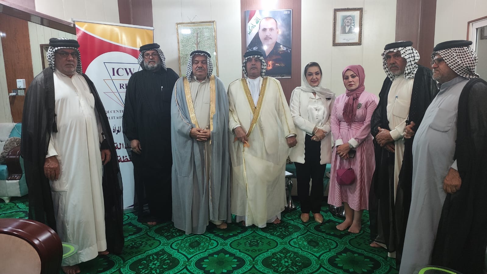 Together to end fusliya in our communities Elite session No. 4 within the fusliya sessions - Justice for All Project / Dhi Qar Governorate, Al-Nasr District, Al-Dughayzat Village, in cooperation with the Head of the Women`s Department in the Governorate Diwan, Engineer Alaa Naji Muhammad. The session was held at the guest house of Sheikh Khaled Jassim Hassan, Sheikh of Al-Atab. All thanks and appreciation for the hospitality and important topics related to human rights and women. It ended with the signing of a memorandum of understanding between the Iraqi Center for Women`s Rehabilitation and Employment and Sheikh Khaled Jassim Hassan, representative of the Al-Atab clan.