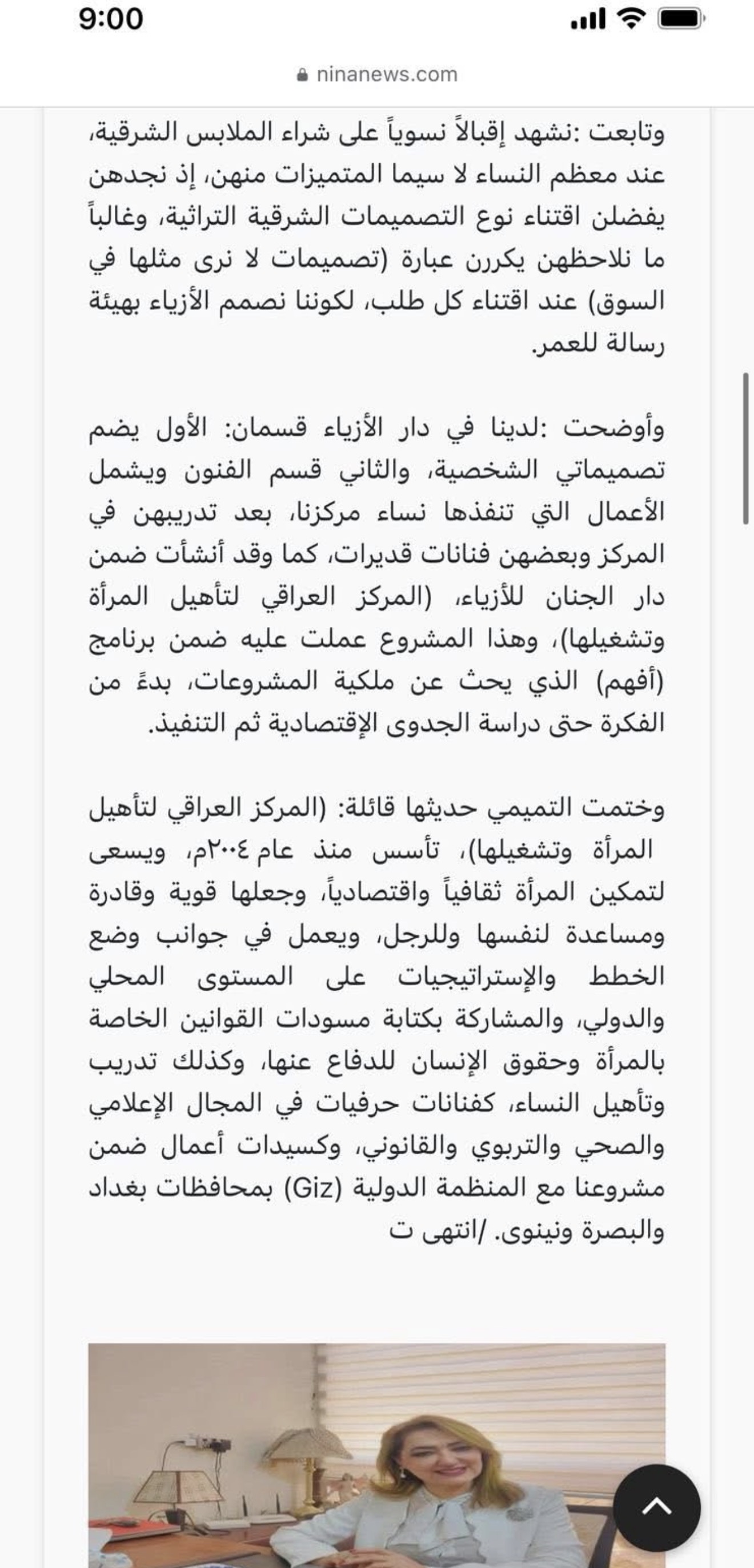 استضافة المستشارة جنان مبارك التميمي رئيسة المركز العراقي لتأهيل المرأه وتشغيلها بقناة بغداد الفضائية (برنامج صباح بغدادي) .